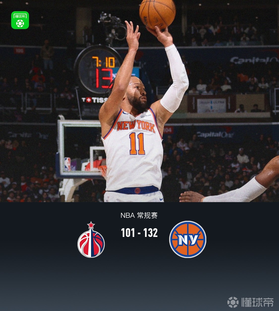 華盛頓奇才威爾-萊利17分5板1助,卡林頓14分2板1助;紐約尼克斯米卡爾-布里奇斯23分4板5助,布倫森21分1板4助。