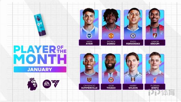 英超官方公布了1月份最佳球員候選。