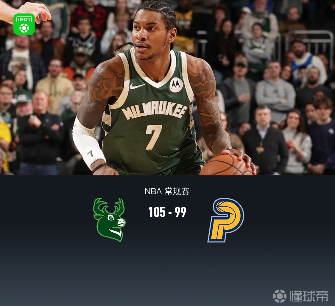 第四節(jié)雄鹿小凱文-波特拿下8分,步行者內(nèi)姆布哈德拿下18分,最終雄鹿105-99戰(zhàn)勝步行者