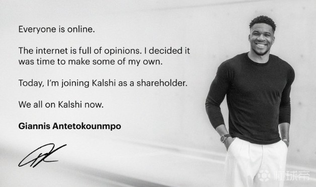 北京時(shí)間2月7日,字母哥在社媒宣布,自己將入股體育競(jìng)猜平臺(tái)Kalshi Sports。