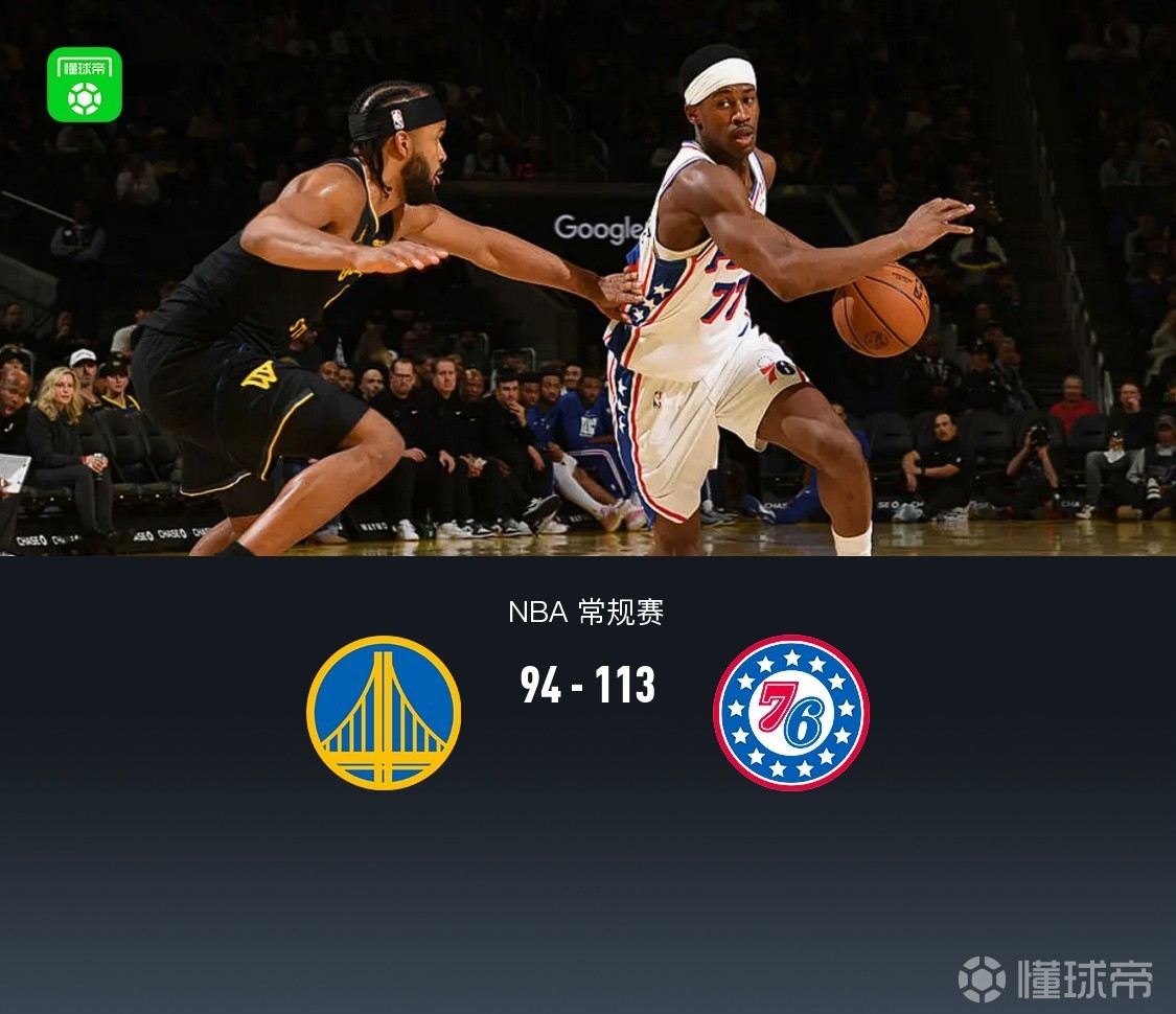 76人八人上雙113-94勇士,埃奇庫姆25+7+7,庫里、恩比德均缺陣