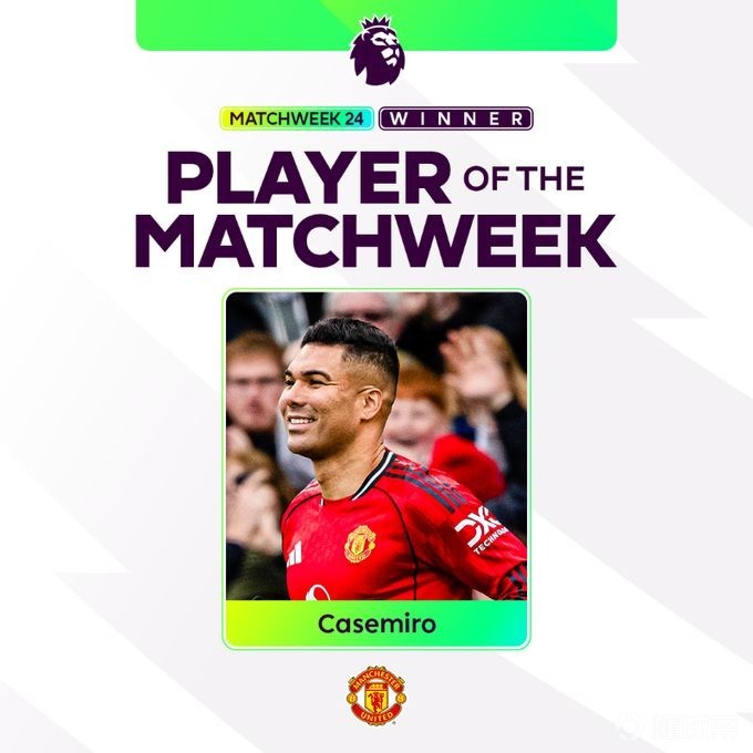 英超官方公布第24輪周最佳球員,曼聯(lián)中場卡塞米羅當(dāng)選。至此,英超第21至24輪周最佳已全部被曼聯(lián)球員包攬。