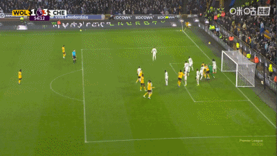 第54分鐘,扳回一城,阿羅科達(dá)雷轉(zhuǎn)身破門,狼隊(duì)1-3切爾西