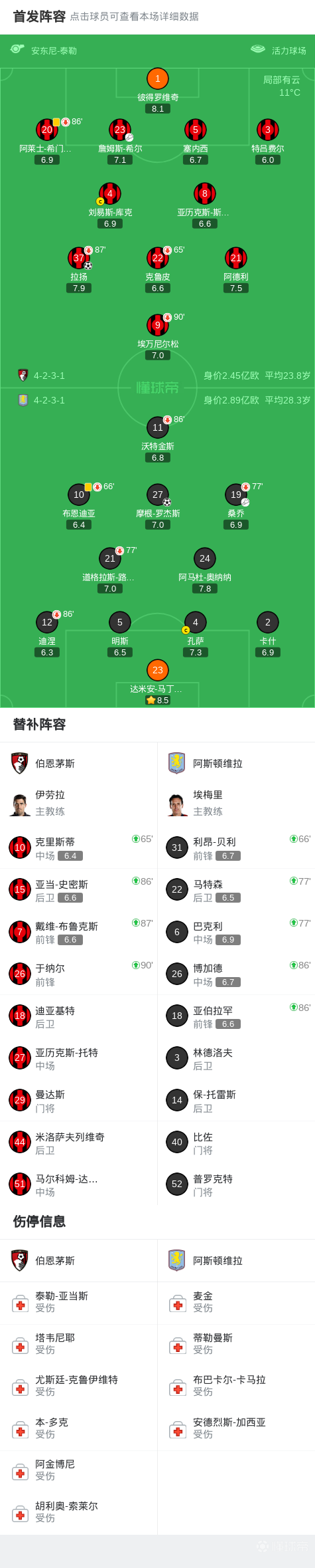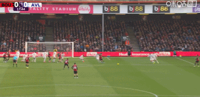 第34分鐘,拉揚甩頭攻門擊中橫梁彈出,伯恩茅斯險些扳平